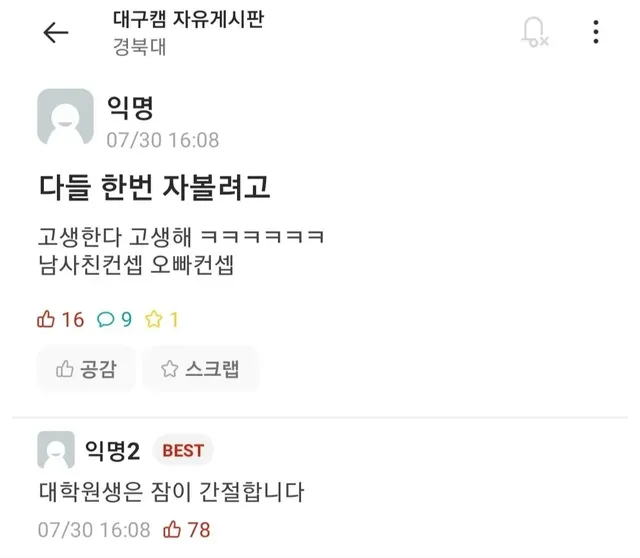 싱글벙글 낭만넘치는 경북대 에타촌