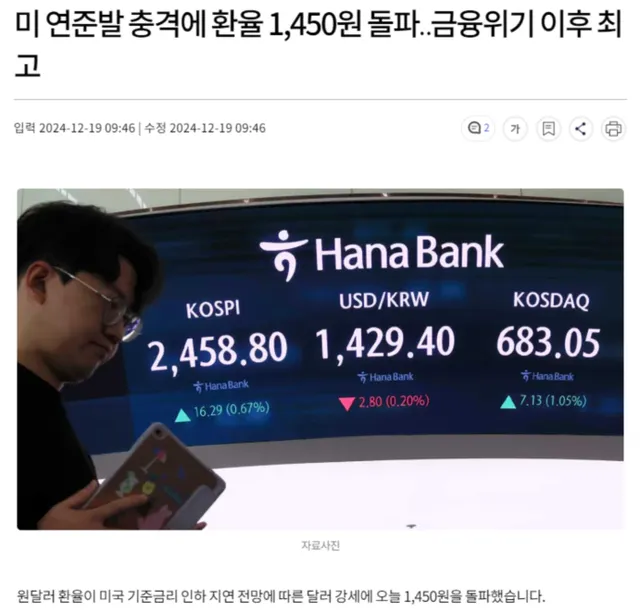 미 연준발 충격에 환율 1,450원 돌파.. 금융위기 이후 최고