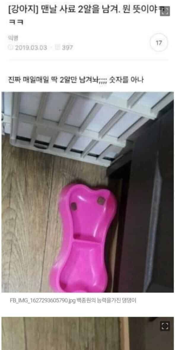 강아지맨날 사료를 두알남겨 뭔 뜻인지