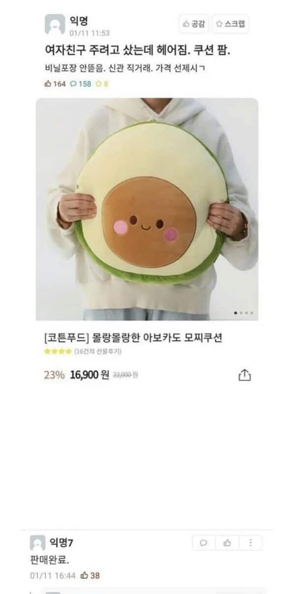 여자친구 주려고 산 쿠션 팝니다..jpg