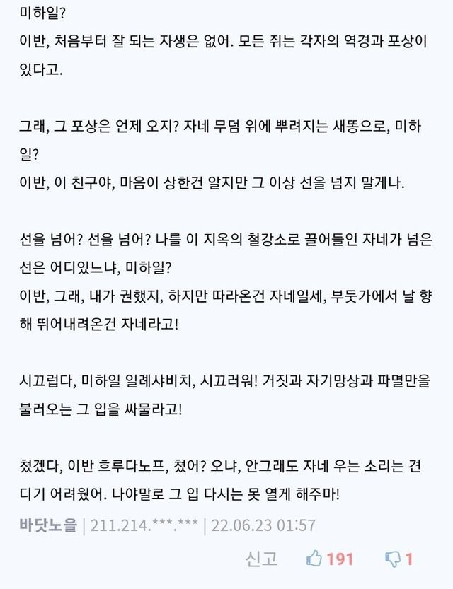 시골쥐와 서울쥐 댓글 문학 걸작선.