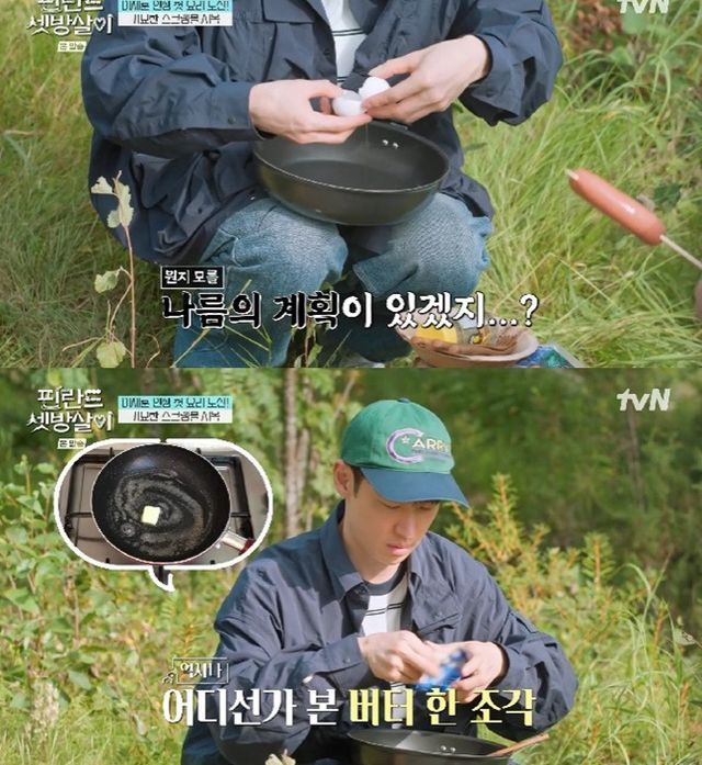 이어 이제훈은 버터 한스푼을 날달걀에 투하했다. 뒤늦게 불로 직행, 버터로 달걀을 풀고 지나치게 많은 소금을 뿌렸다. 버터는 달걀 위에서 표류했다. 차은우는 "달걀국 아니죠?"라며 기괴한 몰골의 요리에 걱정스러운 표정을 지었다.