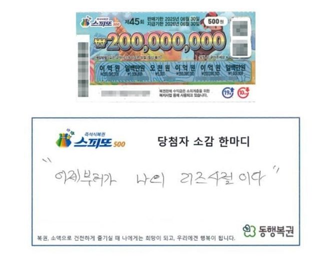 20일 복권 수탁업자 ‘동행복권’ 홈페이지에는 스피또500 45회차 1등 당첨자의 인터뷰가 공개됐다.