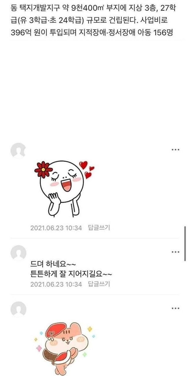장애아동 특수학교 설립에 한 맘카페 반응.