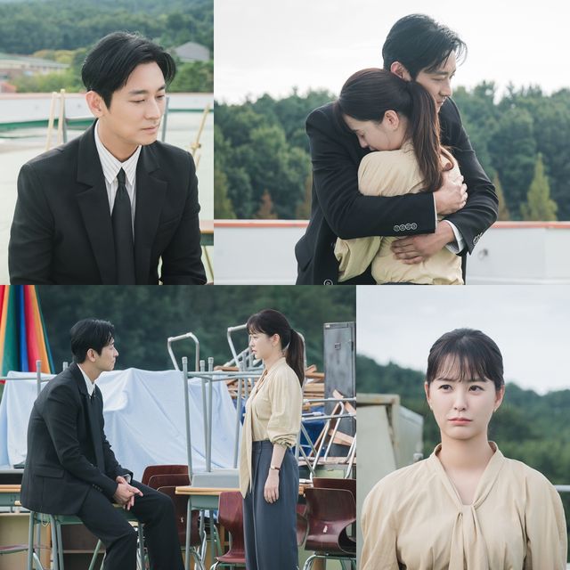 이와 함께 공개된 스틸 속 석지원은 사랑 가득한 포옹으로 윤지원을 위로하고 있어 이목을 집중시킨다. 두 사람은 학창 시절 둘만의 아지트였던 학교 옥상에 함께 올라와 있는 모습.