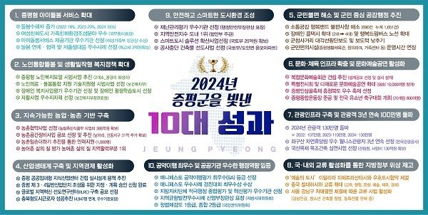 증평군이 발표한 24년 군정을 빛낸 10대 주요성과. / 증평군청