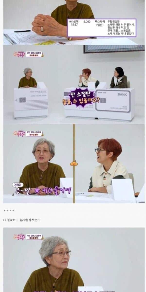 과소비 컨설팅 받는 김영옥 배우님 ㅋㅋㅋㅋㅋㅋㅋㅋㅋㅋ