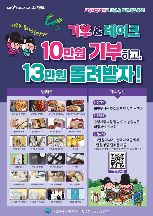 김동근 시장은 “지난해에 이어 올해 의정부에 모이고 있는 소중한 기부에 진심으로 감사드린다”며 “앞으로도 기부자와 지역주민 모두 상생할 수 있는 의정부시만의 특색있는 답례품 발굴과 홍보를 전개하겠다”고 말했다.