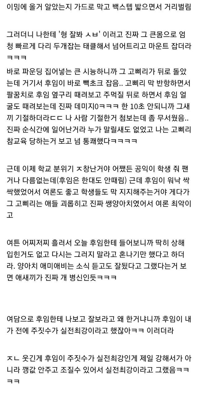 농담안하고 한대도 안맞고 상대편만 겁나 맞는거보고 잘해야되겠다 생각했음 ㅋㅋ