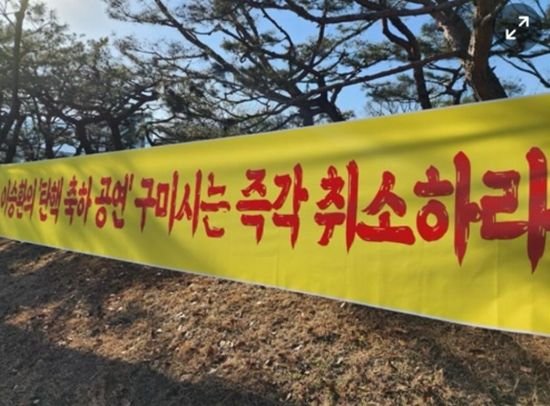 이 때문에 보수단체들은 구미시청 입구 등에 '이승환의 탄핵 축하 공연 구미시는 즉각 취소하라'는 취지의 현수막을 내거는 등 공연 반대를 이어왔던 바.