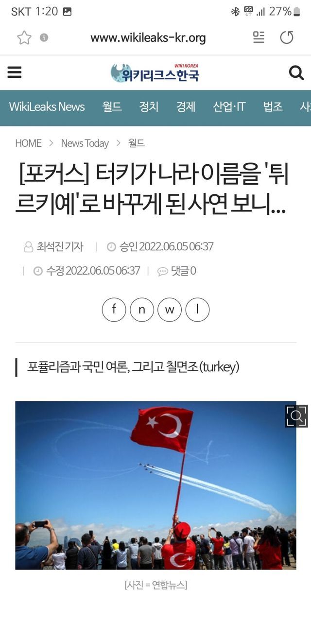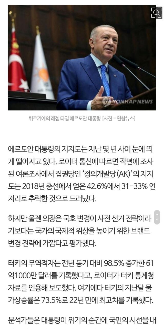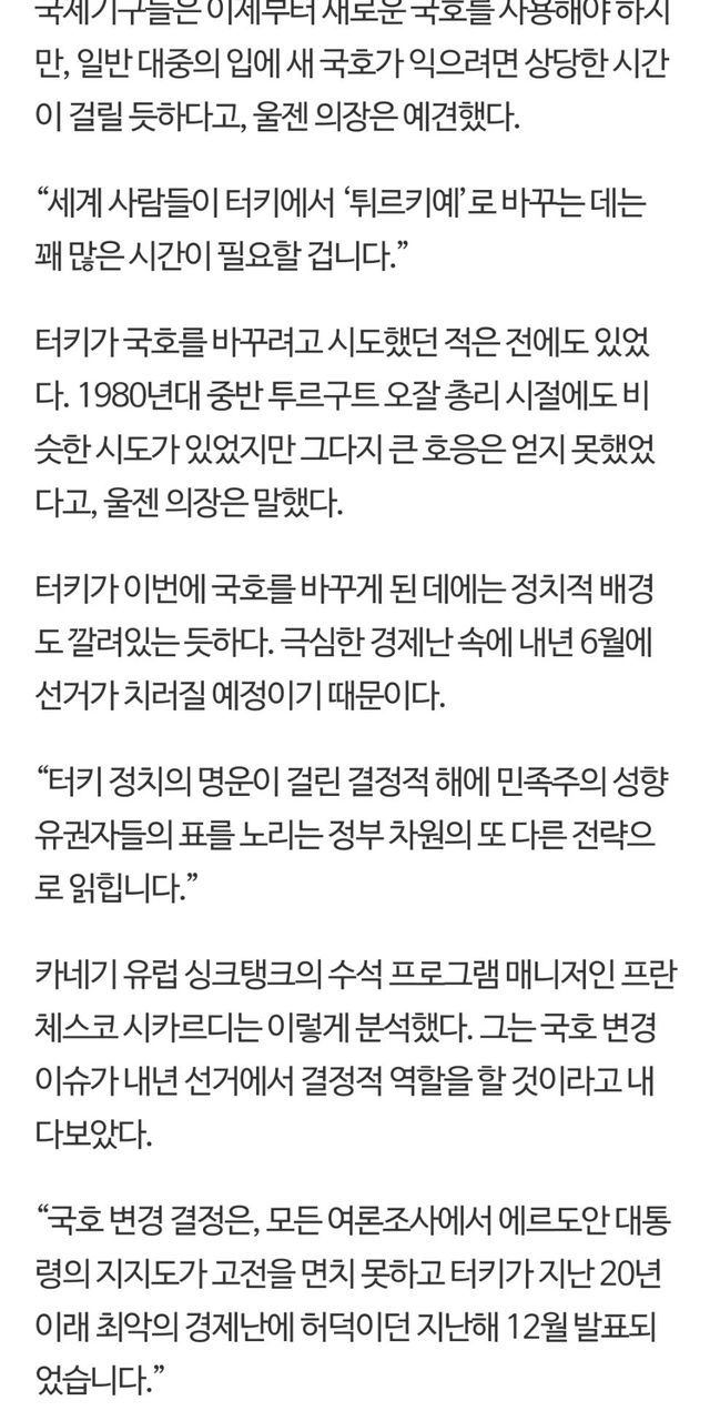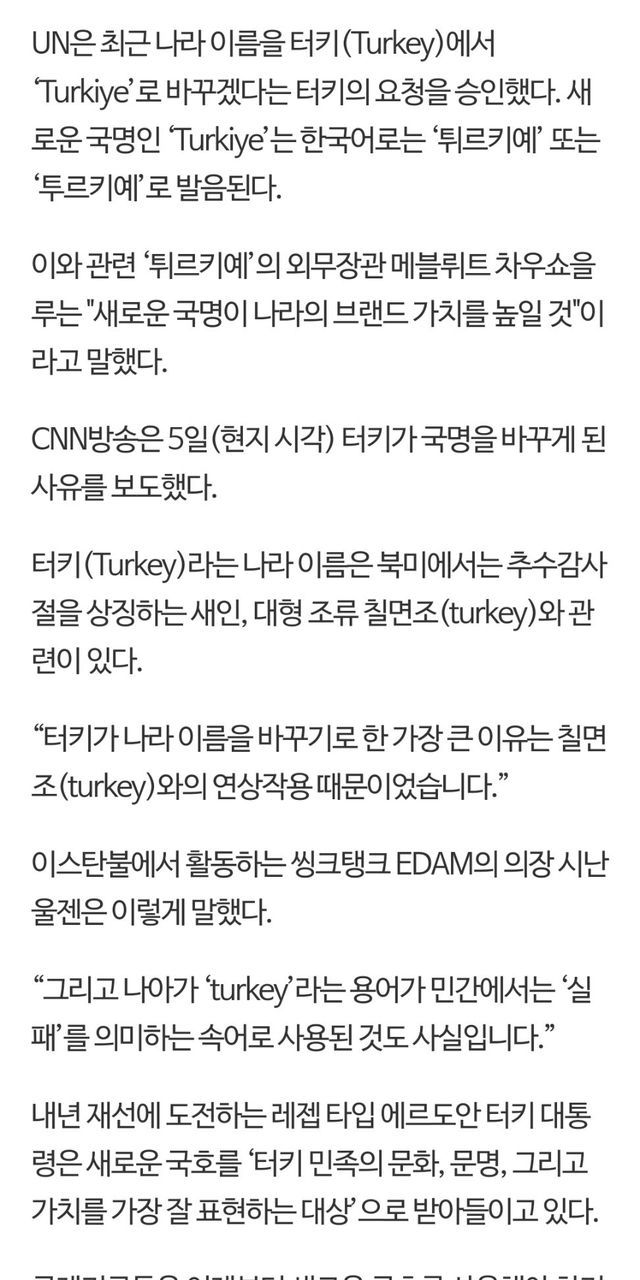 터키 국명 변경 튀르키예.