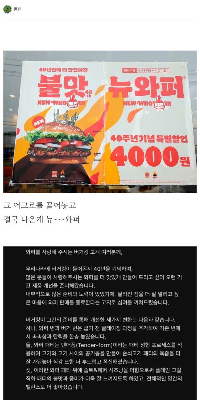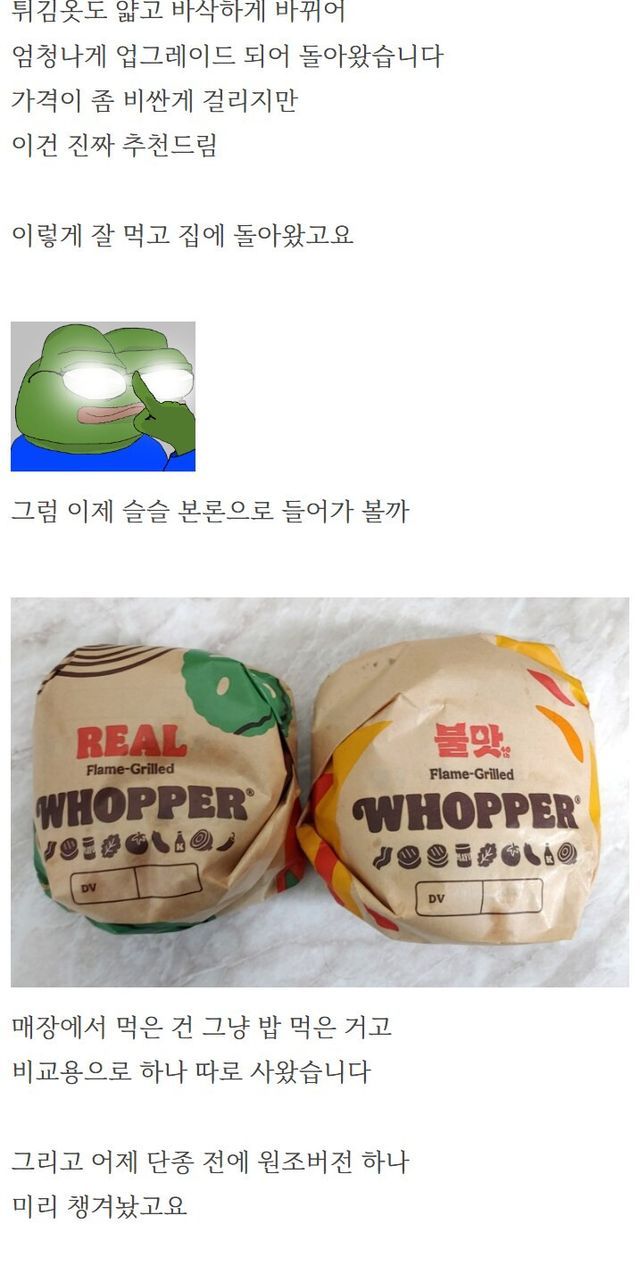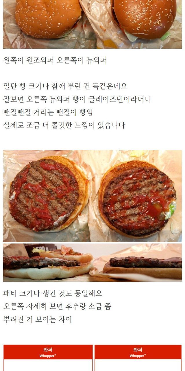 버거킹 와퍼-뉴와퍼 정면비교 리뷰
