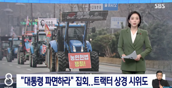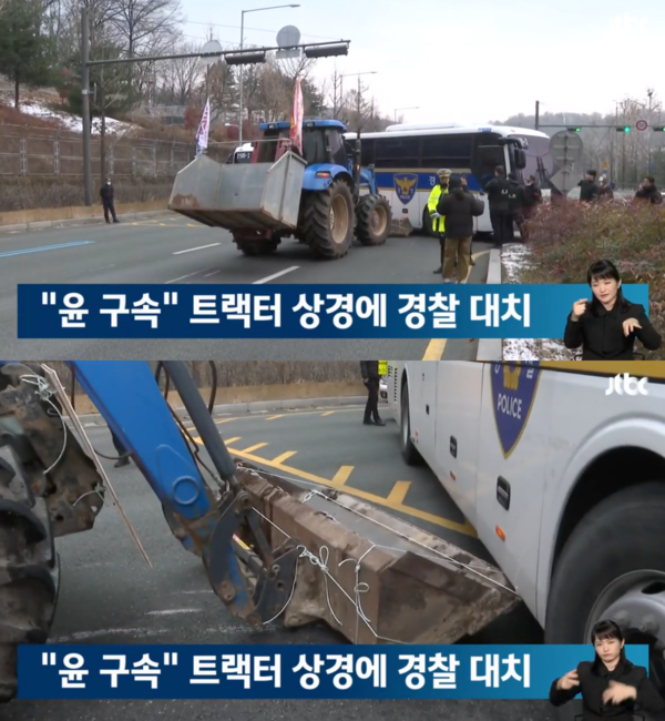 전국농민회총연맹(전농) 소속 농민들은 윤 대통령 체포를 촉구하며 트랙터와 화물차 80여 대로 서울로 진입하려 했으나 남태령 고개에서 경찰의 차벽에 막혔다.