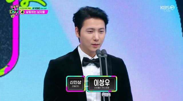 이날 리얼리티 부문 신인상 주인공이 탄생했다. '신상출시 편스토랑' 남윤수, '살림하는 남자들' 박서진, '살림하는 남자들' 박영규, '신상출시 편스토랑' 이상우, '사장님 귀는 당나귀 귀' 이순실이 후보에 오른 가운데 박서진과 이상우가 트로피의 주인공이 됐다.
