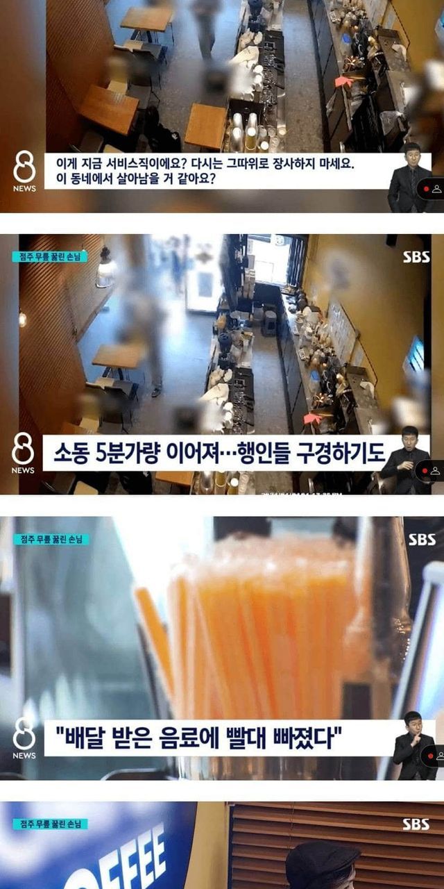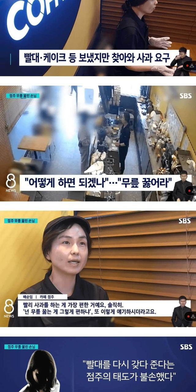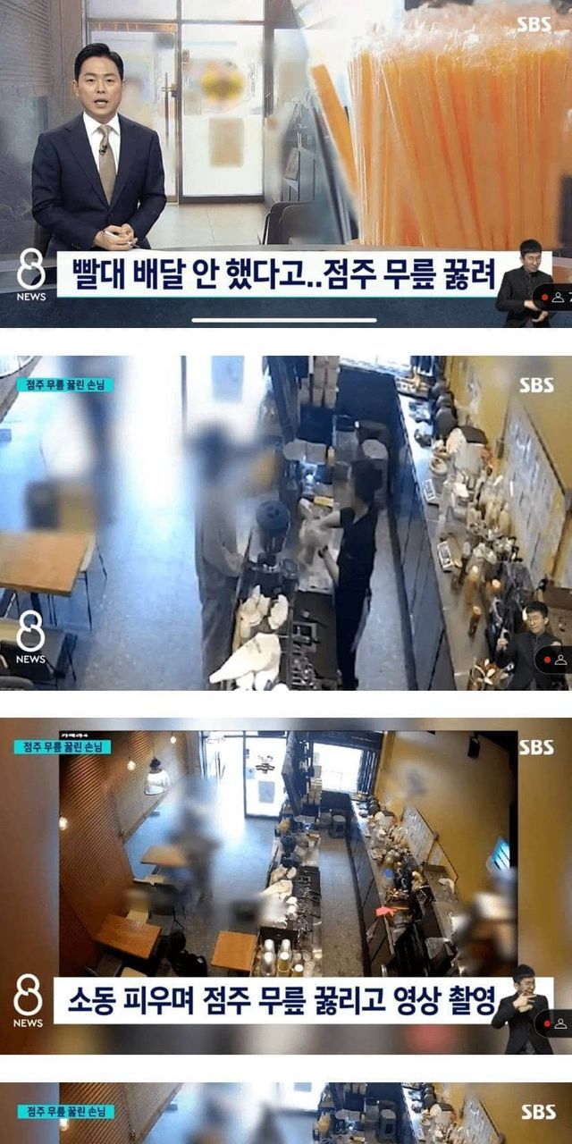 빨대 배달 안 했다고 점주 무릎 꿇려