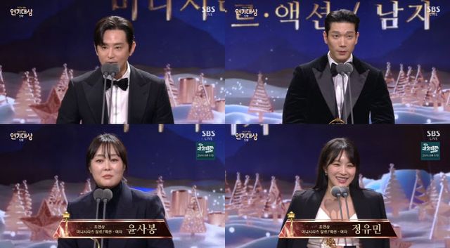 미니시리즈 장르·액션 부문 여자 조연상은 ‘커넥션’의 윤사봉과 정유민이 받았다. 윤사봉은 “‘커넥션’이라는 드라마에 참여하게 됐을 때 ‘나만 잘하면 되겠구나’ 했는데 정말 그랬다”며 “에너지가 모여서 시청자 분들이 잘 봐주신 것 같다”고 제작진, 동료 배우, 가족 등에게 감사 인사를 전했다.