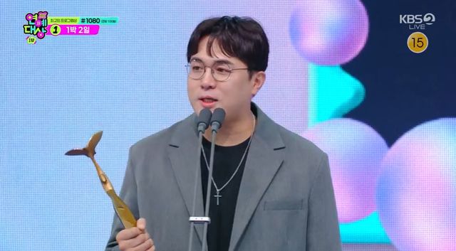 이날 '열린 음악회', '불후의 명곡' 사전 MC로 활약하고 있는 MC배가 올해의 스태프상을 수상했다. 자신의 호명을 예상하지 못한 MC배는 급히 뛰어나와 눈물을 글썽이는 모습이었다.