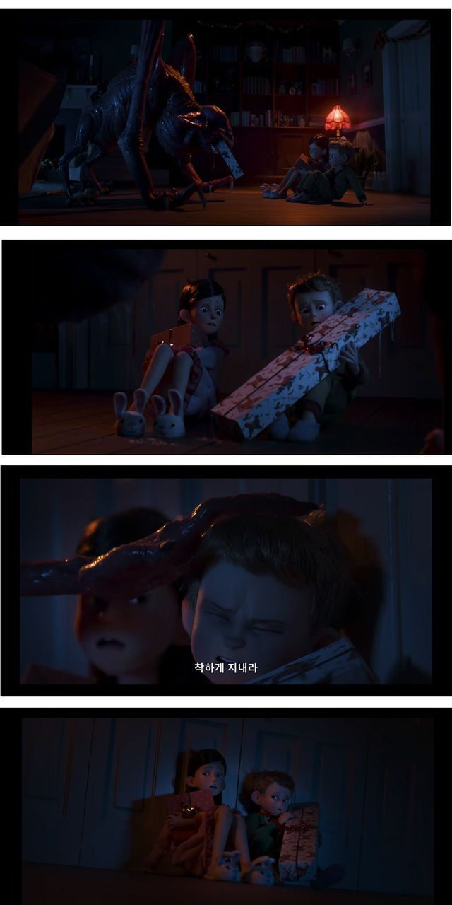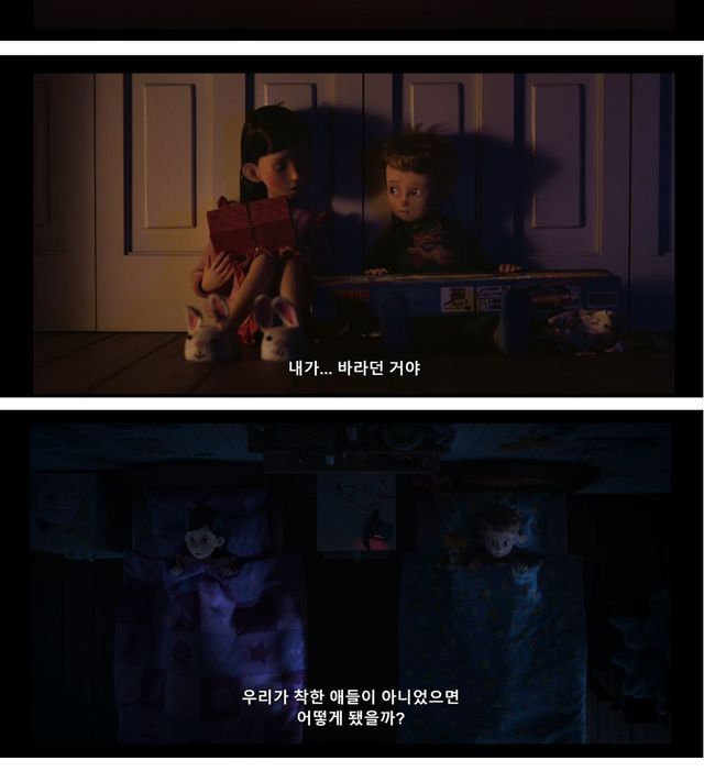 산타를 보고싶어했던 남매가 잠안자고 기다린끝에 산타에게 칭찬받고 원하던 선물도 받았다는 훈훈한 이야기