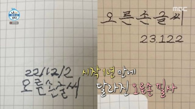 왼손으로 글씨를 잘 쓰고 싶었는데 수전증이 심해서 수술을 받기도 했고