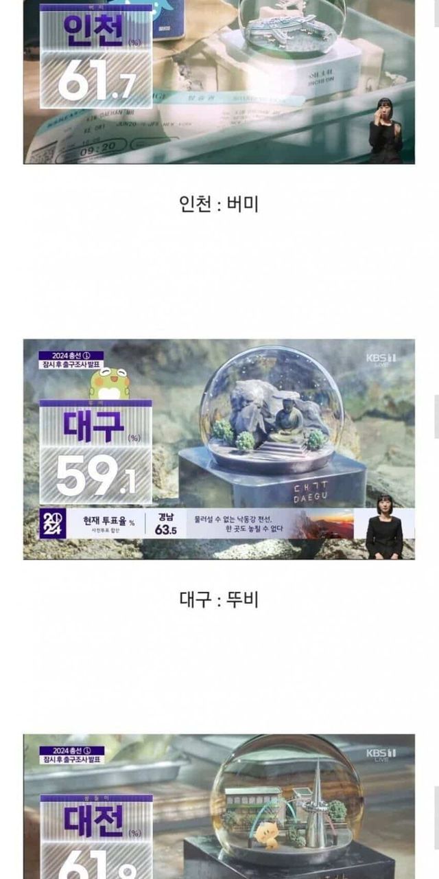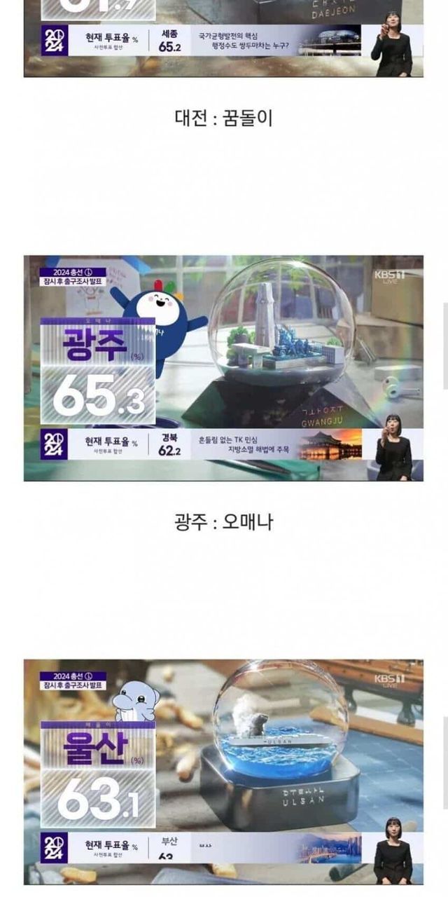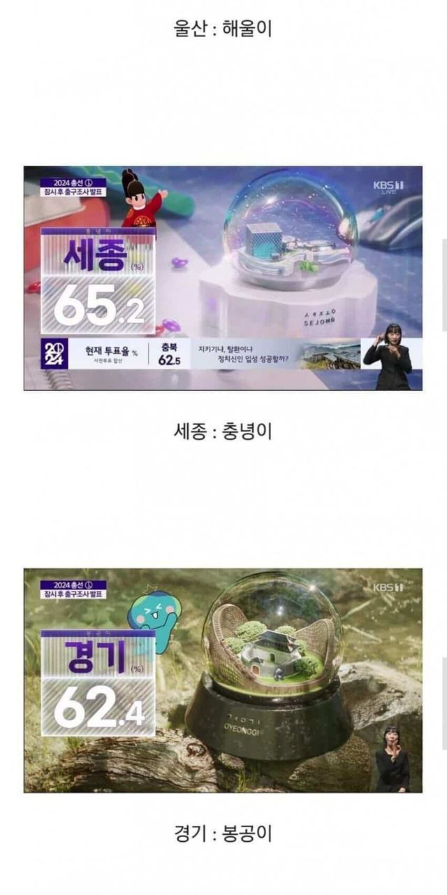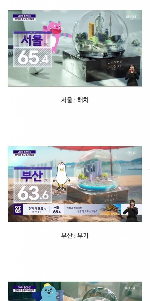 개표 방송과 각 지역 마스코트