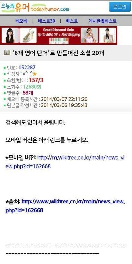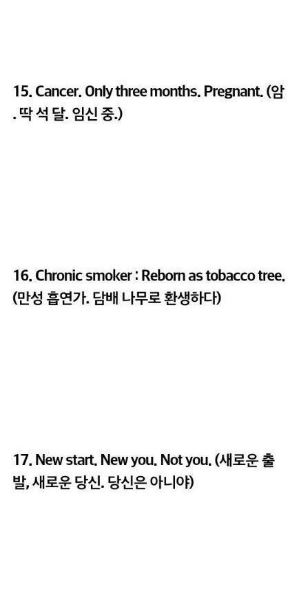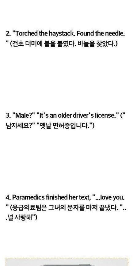 6개 영어 단어로 만들어진 소설 20개,,