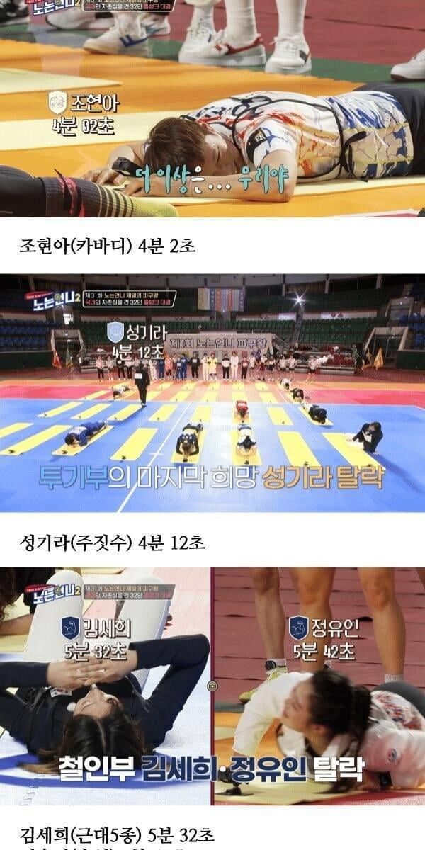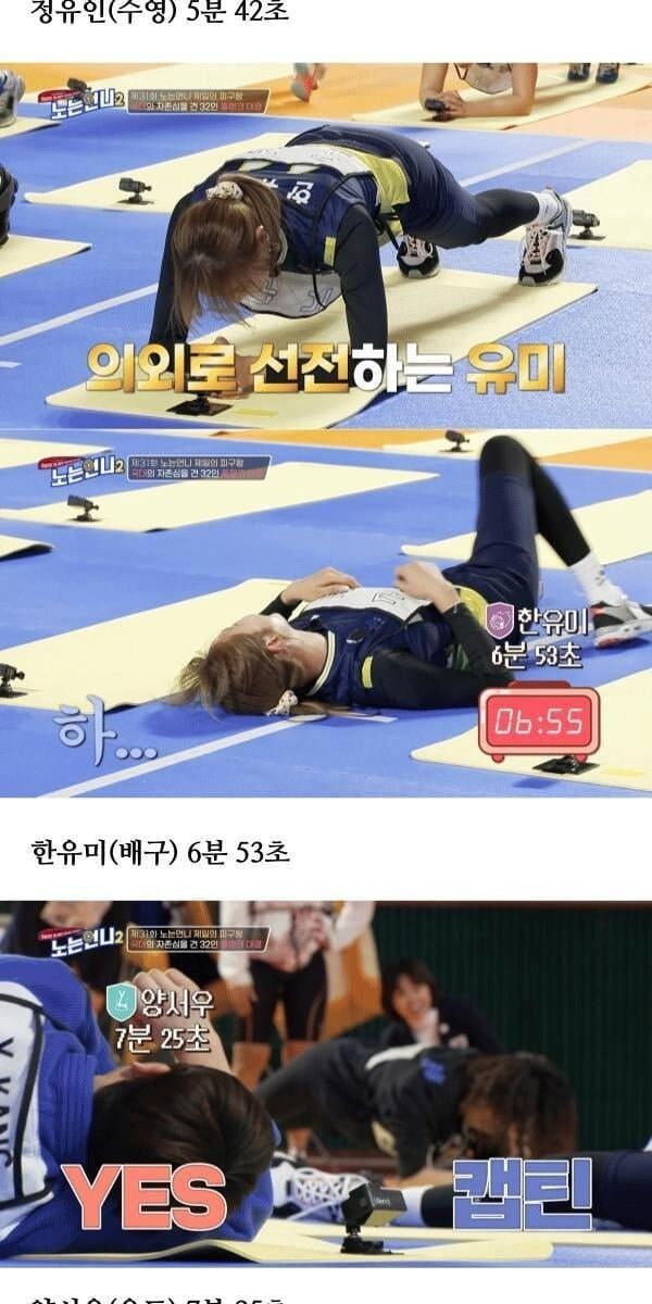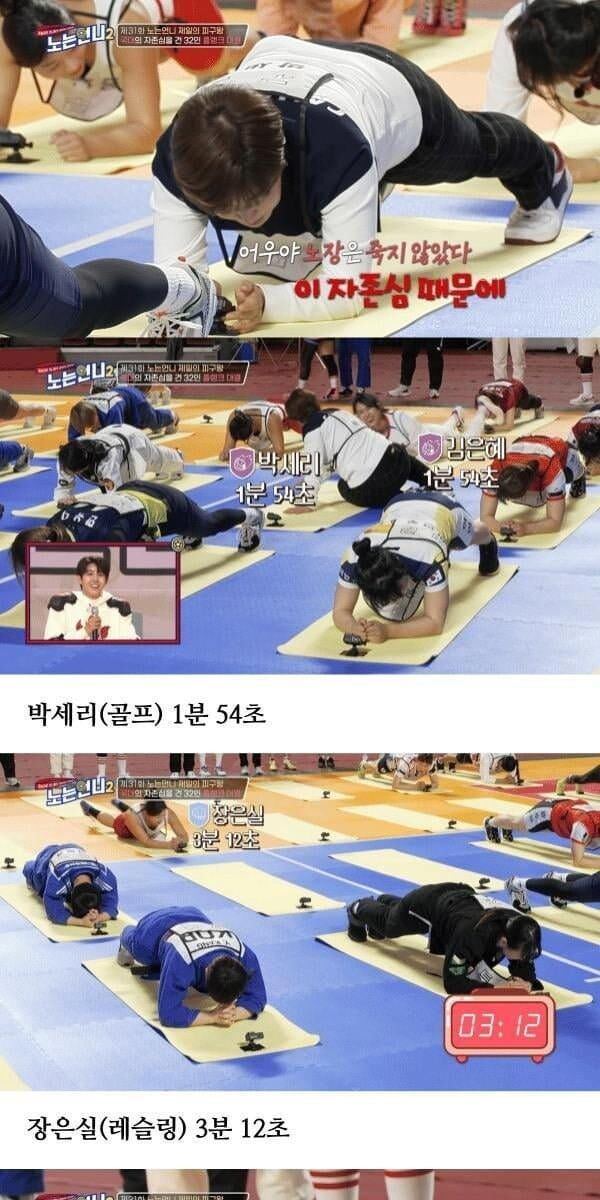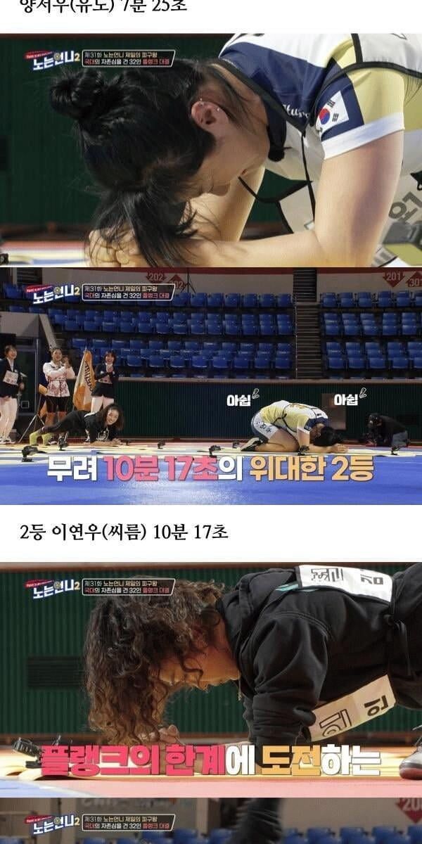 노는 언니2, 국대선수들 플랭크 기록