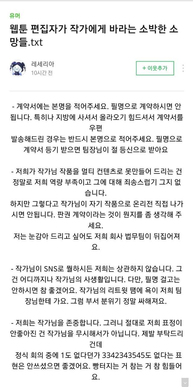 어느 웹툰편집자의 넋두리