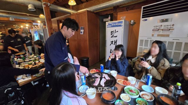 지난 21일 대구 모처의 한 식당에서 뜻깊은 행사가 열렸다. 지난해에 이어 강민호가 선수들과 함께 준비한 '강식당(강민호의 삼겹살 파티)' 두 번째 자리가 마련된 것. 강민호를 비롯한 삼성 선수들이 한 시즌 응원을 보내준 팬들을 위해 직접 고기를 구워주고 수익금 전액을 기부하는 따뜻한 행사다. 이날 행사엔 강민호와 구자욱, 박병호, 김헌곤 등 베테랑 선수들을 비롯해 김지찬, 육선엽, 양도근 등 어린 선수들도 함께 참석해 팬들과 좋은 시간을 보냈다.