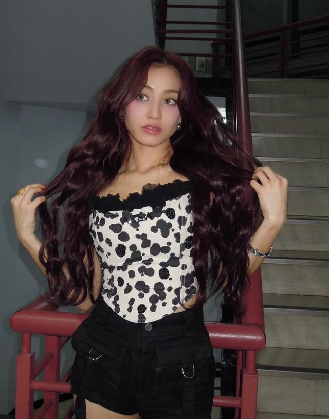 지효는 21일 자신의 인스타그램에 무대 대기 도중 계단에서 찍은 사진을 게재했다. 사진 속 그는 크롭톱과 초미니 팬츠 등 스타일리시 하게 멋을 블랙 룩을 선보였다. 다리를 꼰 채 계단에 앉아 도도하면서도 시크한 분위기를 연출했다. 뚜렷한 이목구비와 인형 같은 비주얼로 보는 이들의 시선을 사로잡았다.