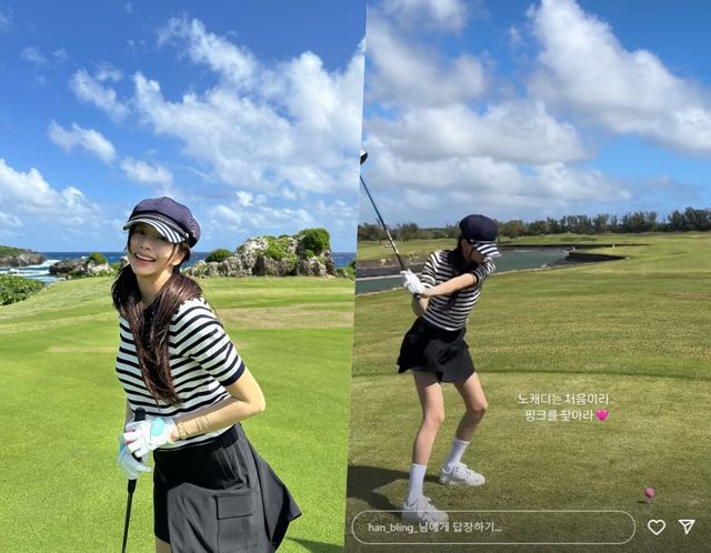 사진 속 한보름은 스트라이프 패턴이 돋보이는 티셔츠와 블랙 색상의 스커트를 매치한 모습이다. 여기에 양갈래로 머리를 묶은 뒤 모자를 착용해 러블리한 매력을 더했다. 이어 한보름은 인스타그램 스토리에는 바람을 맞으며 골프에 집중한 모습을 공개해 눈길을 끌기도 했다.
