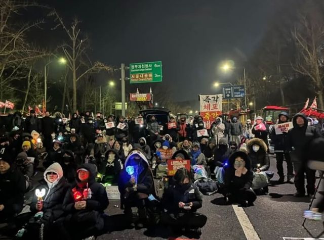 한 시민은 온라인 커뮤니티 '더쿠'를 통해 "광화문 시위하러 갔다가 돌아오는 길에 남태령 소식 듣고 갔다가 지금 돌아오는데 차도 다 끊긴 한밤중 영하 7도에 편의점도 아무것도 없는 아스팔트에 앞뒤로 봉쇄해 놓았던 건 우리보고 그냥 죽으라는 거였다"라고 말했다.