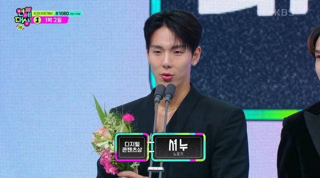 셔누는 21일 서울 여의도 KBS 신관 공개홀에서 열린 ‘2024 KBS 연예대상’에서 KBS Kpop 채널의 웹예능 ‘노포기’를 통해 디지털 콘텐츠상을 수상했다.