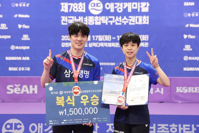 실업탁구 삼성생명 조승민이 종합선수권대회 혼합복식 정상에 올랐다. 이번엔 주천희(삼성생명)와 호흡을 맞춰 개인통산 4번째 혼합복식 우승을 달성했다.