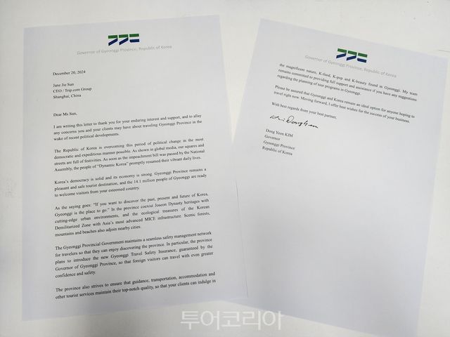 비상계엄 사태 이후 외국지도자 2,500여 명을 대상으로 ‘서한외교’를 펼친 김동연 경기도지사가 외래관광객 유치를 위해 해외 주요 여행사를 대상으로 다시 한번 편지를 발송했다.