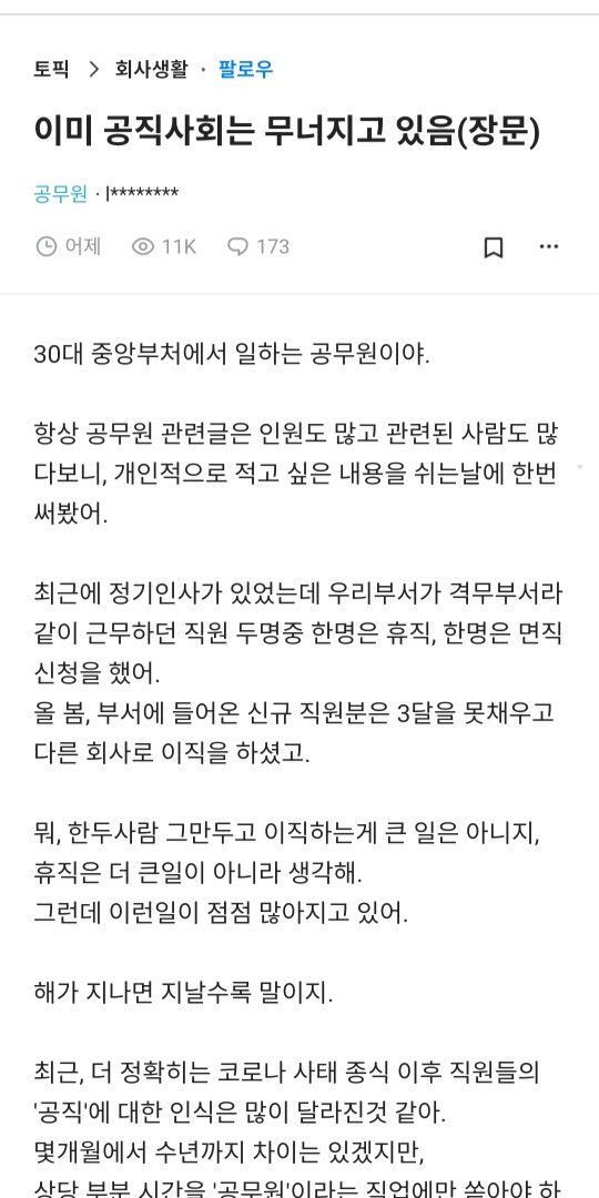 이미 공직사회는 무너지고 있다는 공무원