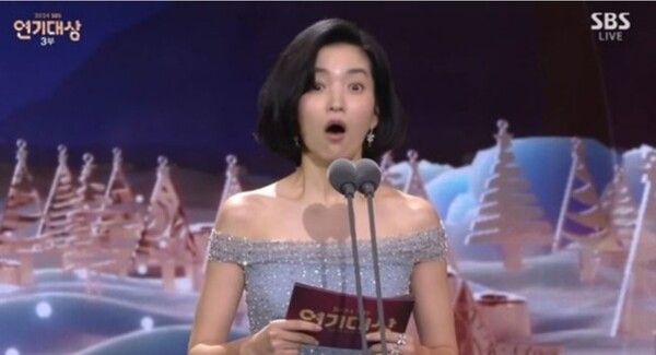 [메디먼트뉴스 김수현 기자] 배우 김태리가 ‘2024 SBS 연기대상’ 시상자로 무대에 올라 진행 중 깜짝 실수를 했지만, 함께 시상자로 나선 이제훈의 재치 있는 대처로 훈훈하게 마무리되었다.