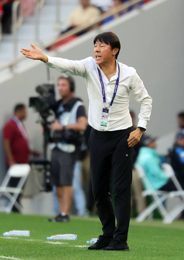 인도네시아 신태용 감독이 지난 1월 24일(현지시간) 카타르 도하 알투마마 스타디움에서 열린 2023 아시아축구연맹(AFC) 카타르 아시안컵 조별리그 D조 조별리그 3차전 일본과 인도네시아의 경기에서 벤치로 향하고 있다 / 뉴스1