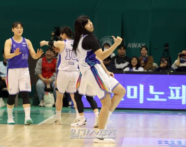 특히 진안(부천 하나은행)이 화려한 퍼포먼스로 코트를 장악했다. 등장부터 화려했던 진안은 3쿼터 중반 치어리더에 합류해 함께 응원하고 춤을 추는 등 분위기를 달궜다. 3쿼터가 중단됐다가 재개될 때는 가발을 쓰고 나와 홀로 춤추며 가장 큰 호응을 끌어냈다.