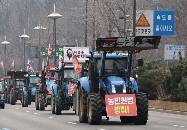 전국농민회총연맹(전농)은 22일 오후 4시 서울 서초구 남태령고개 도로에서 경찰과 이틀간의 대치 끝에 경찰과 트랙터 행진 협상에 타결했다. 이들은 타결 이후 곧장 트랙터를 몰고 용산을 향하고 있다.