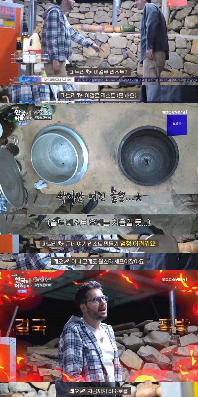 반강제로 솥과 장작불 써서 리조또 만드는 “파브리”