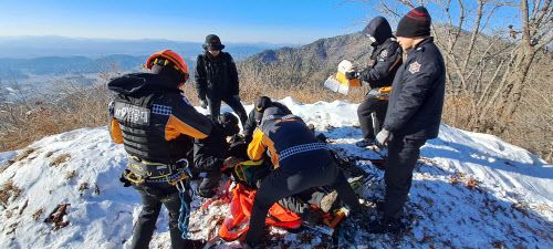 신고를 받고 출동한 소방대원들은 헬기로 A씨를 구조해 병원으로 옮겼다.