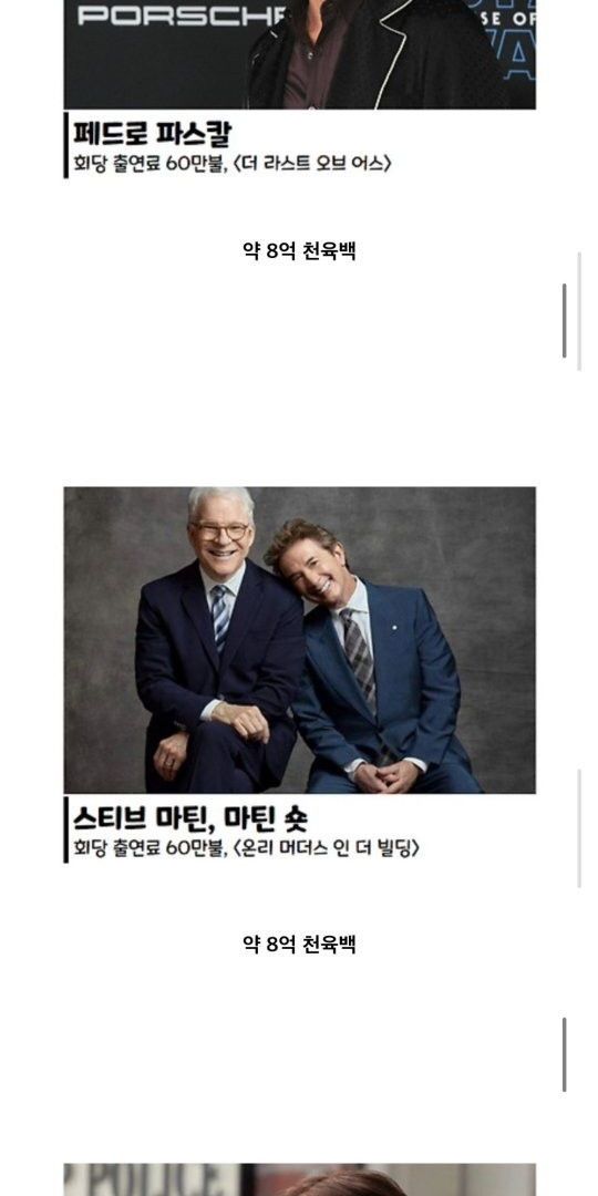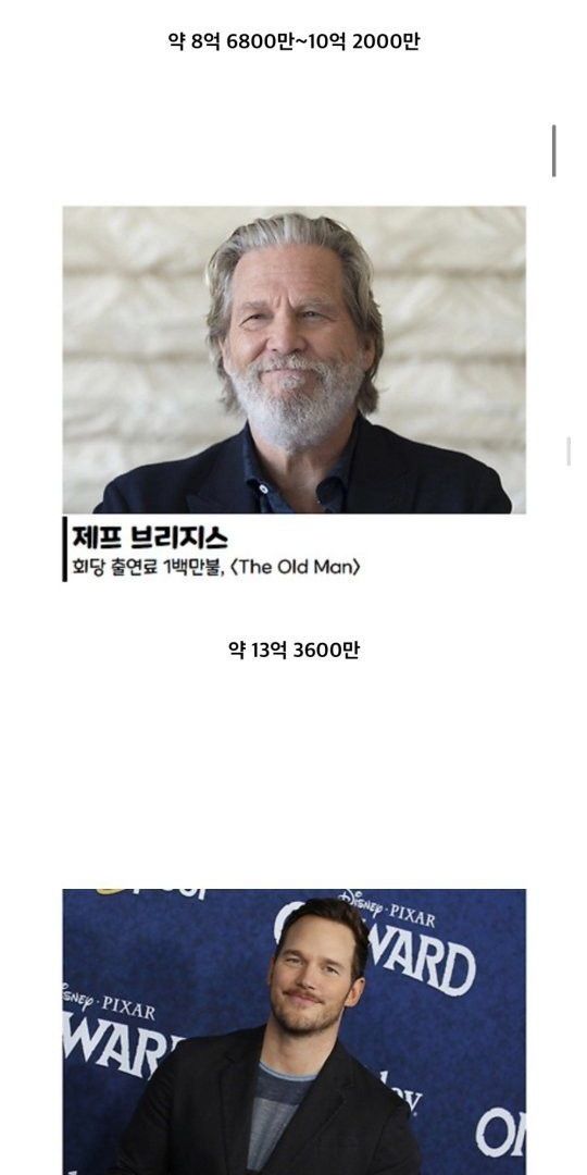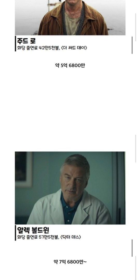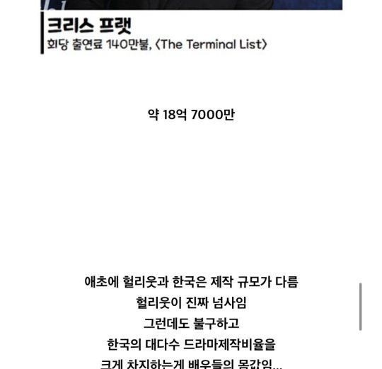 한국과 비교해도 별 차이없는 헐리웃 배우들 몸값