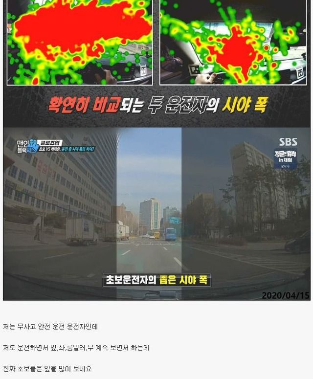 운전경력 17년 베테랑 vs 8개월 초보의 시야폭 차이.