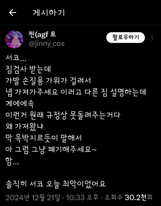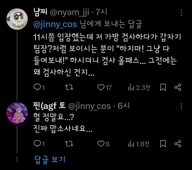 워낙 흉흉한 일 많으니, 짐검사는 다들 이해했는데