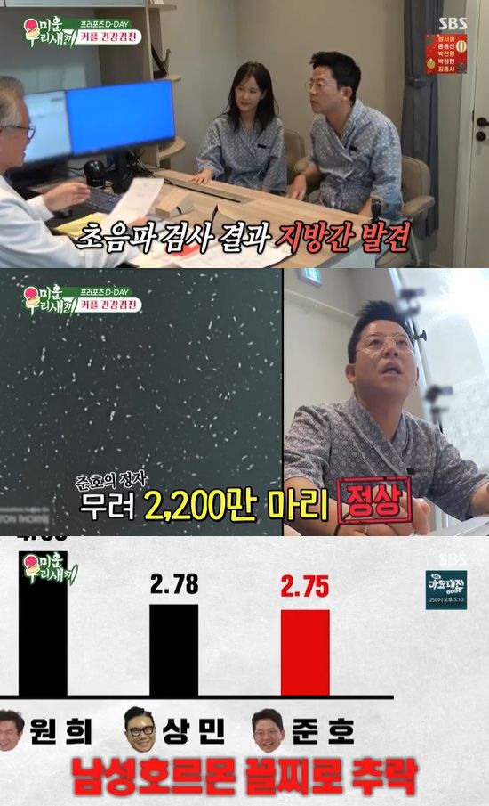 좋은 수치가 있냐는 김준호의 말에 의사는 그의 정자 활동을 언급했다. "1ml당 정자 1600만 마리를 정상이라고 보는데, 2200만 마리가 있어서 정상이라고 보인다"라며 긍정적인 소견을 전했다.