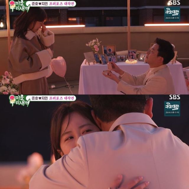 22일 방송된 SBS 예능 프로그램 ‘미운 우리 새끼’ (이하 ‘미우새’)에는 3년 열애 끝에 정식으로 김지민에게 프러포즈하는 김준호의 모습이 그려졌다.