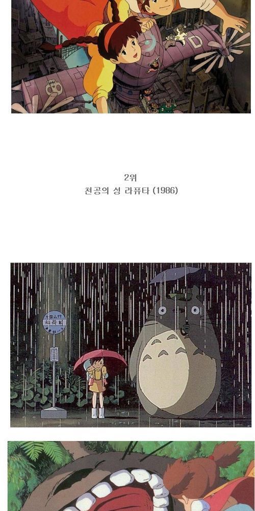 미야자키 하야오가 뽑은 자신의 작품 순위,,