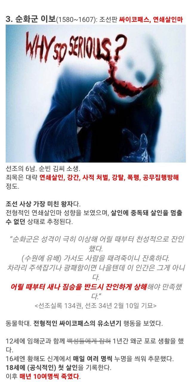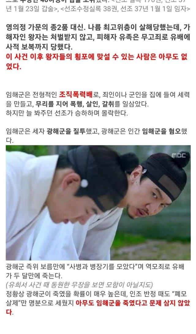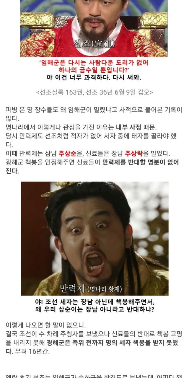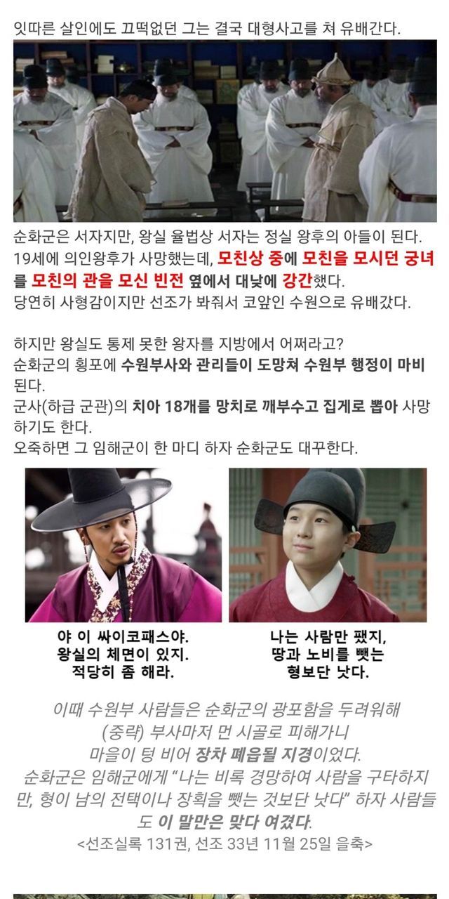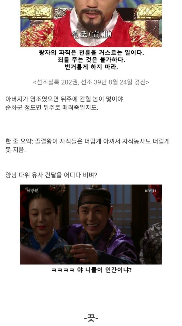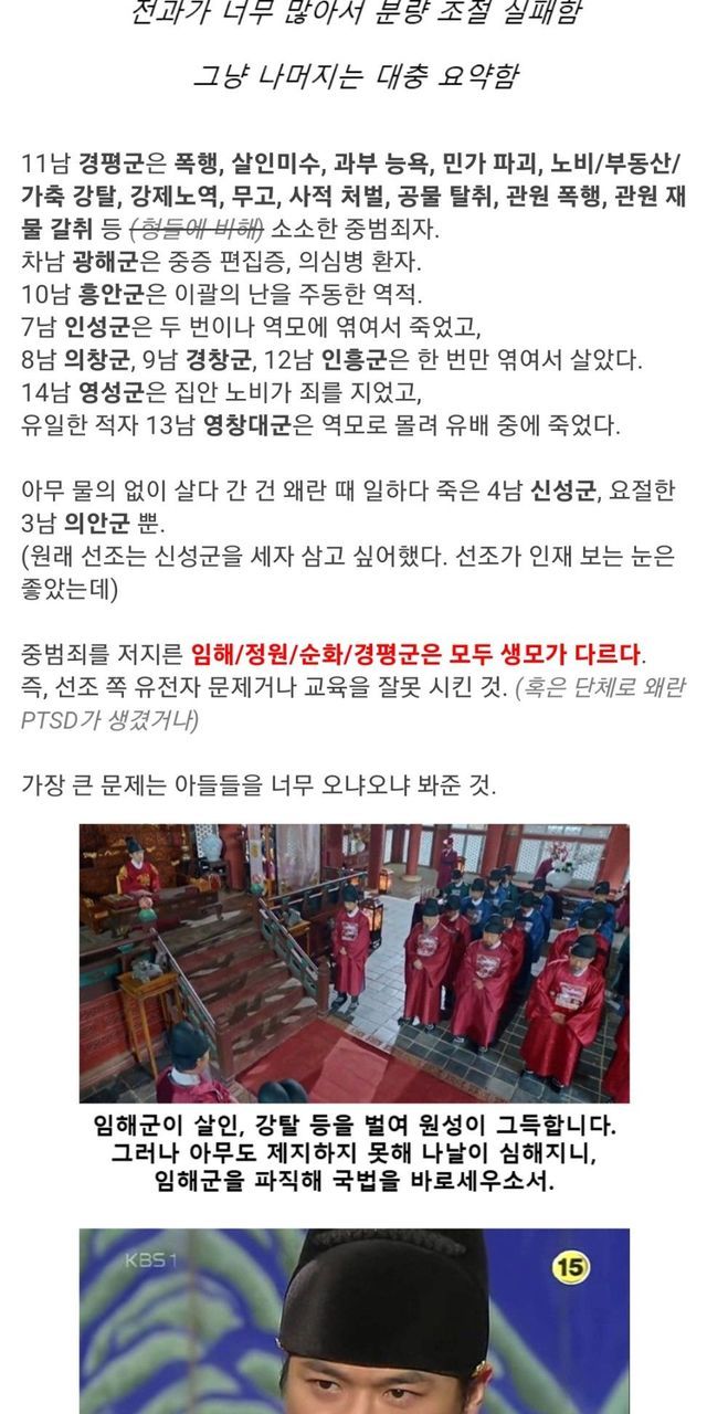 양녕대군을 가볍게 능가하는 선조의 망나니 아들들.