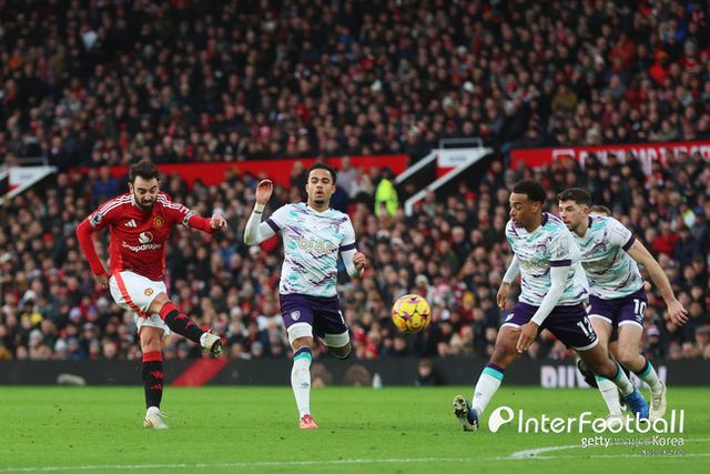 맨유가 득점을 노렸다. 전반 18분 디알로의 패스를 받은 브루노가 과감하게 슈팅을 때렸지만 득점으로 이어지지 않았다.