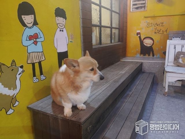 애월 카페에서 본 웰시코기. <사진=윤동욱 기자>